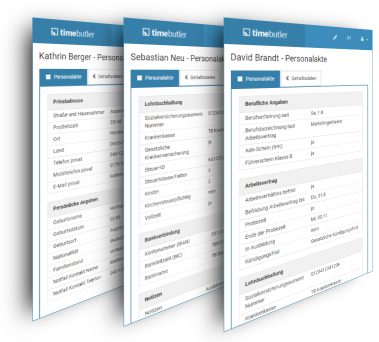 Mit Timebutler können Sie für jeden Mitarbeiter eine Personalakte führen. Sie können den