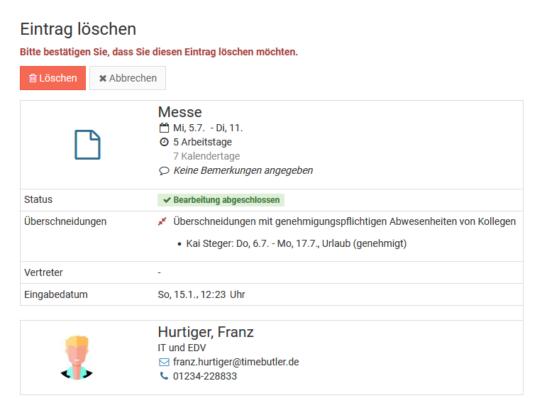 Screenshot: Abwesenheitseintrag löschen