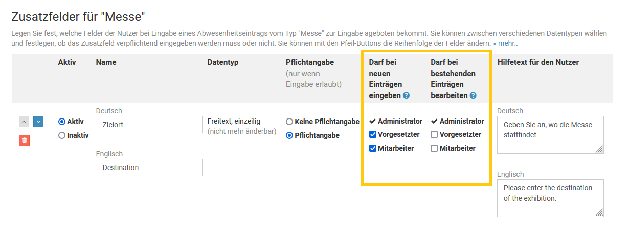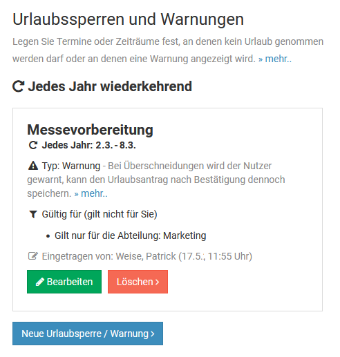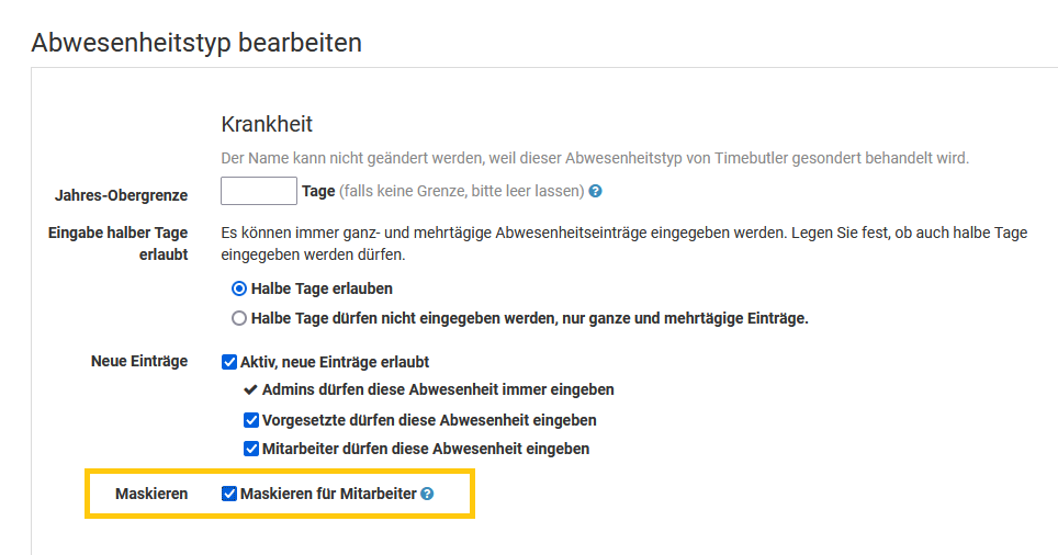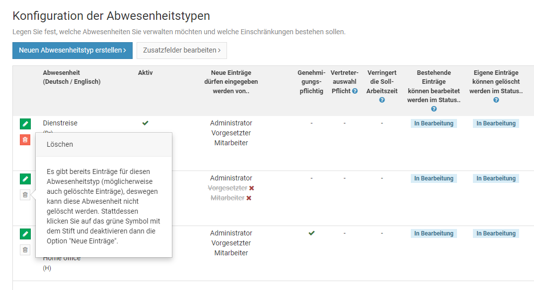 Bearbeiten und Löschen von Abwesenheitseinträgen erlauben