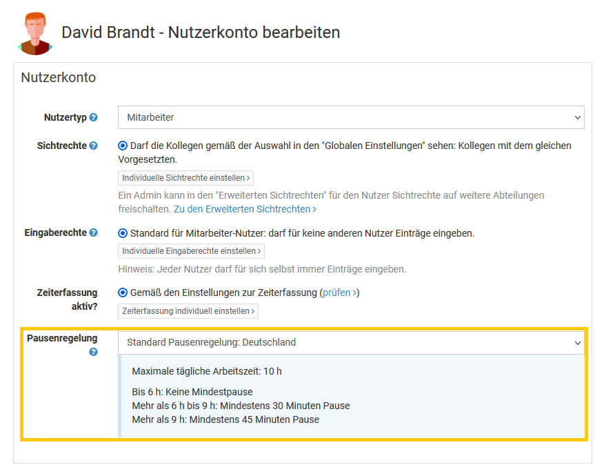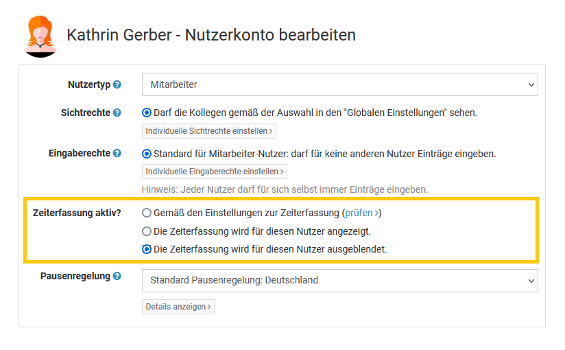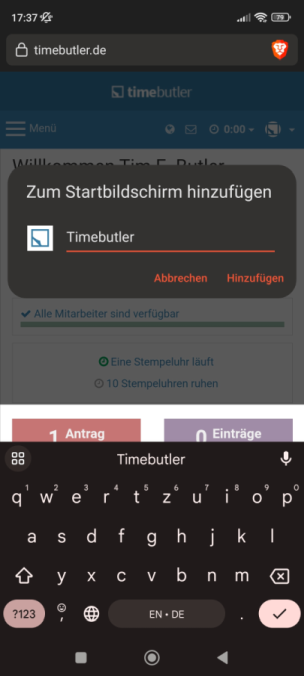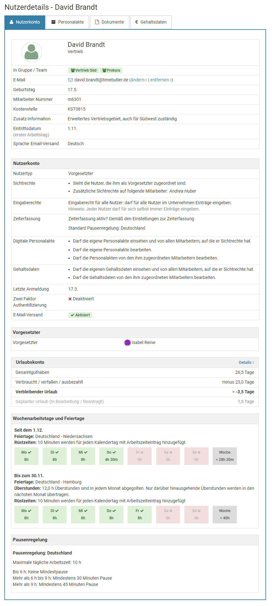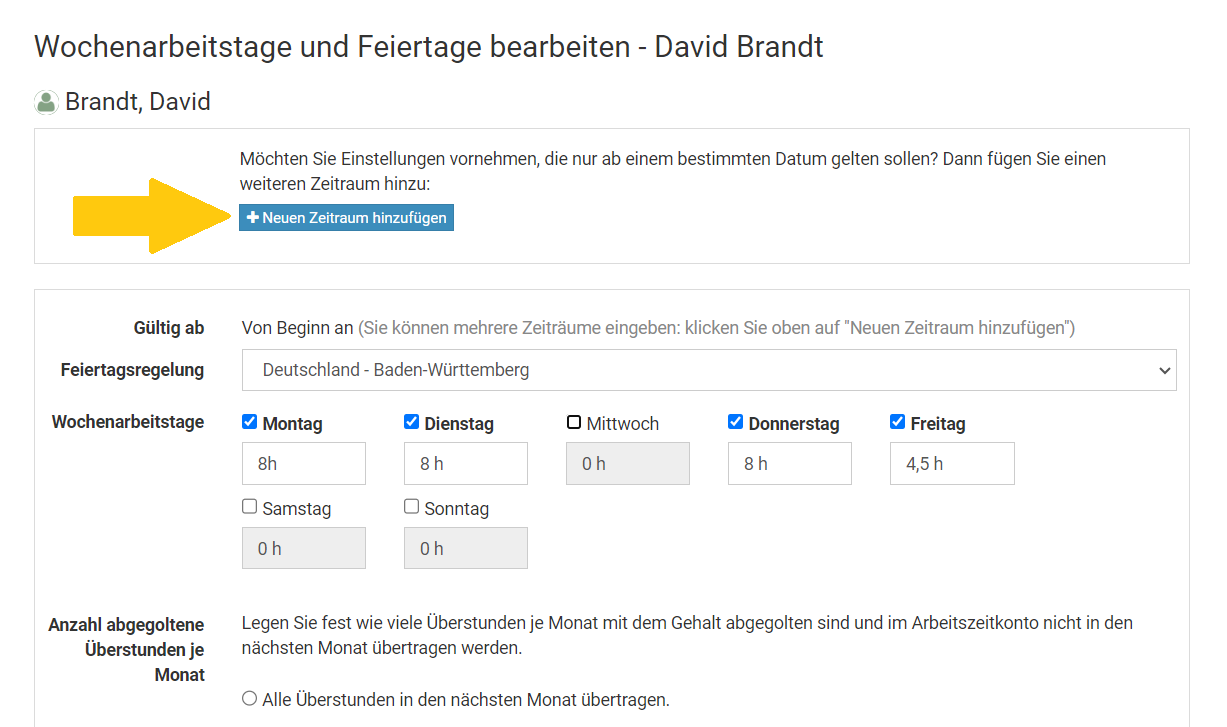 Melden Sie sich als Admin am Timebutler an - nur Admins haben die Berechtigung, diese Änderung vorzunehmen. Falls Sie keinen Admin-Nutzer im Timebutler haben, können Sie einen Admin darum bitten.