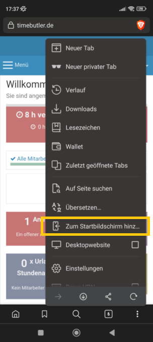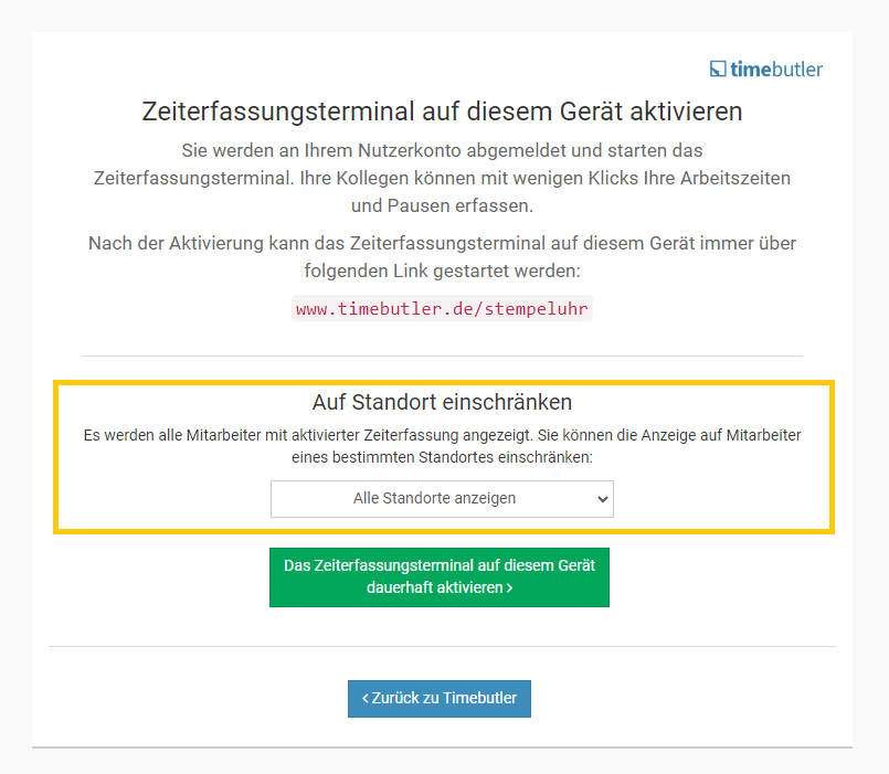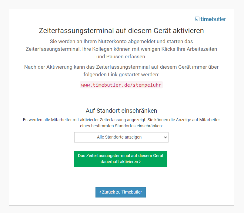 Mitarbeiter-Nutzer melden sich am Timebutler an und klicken links auf "