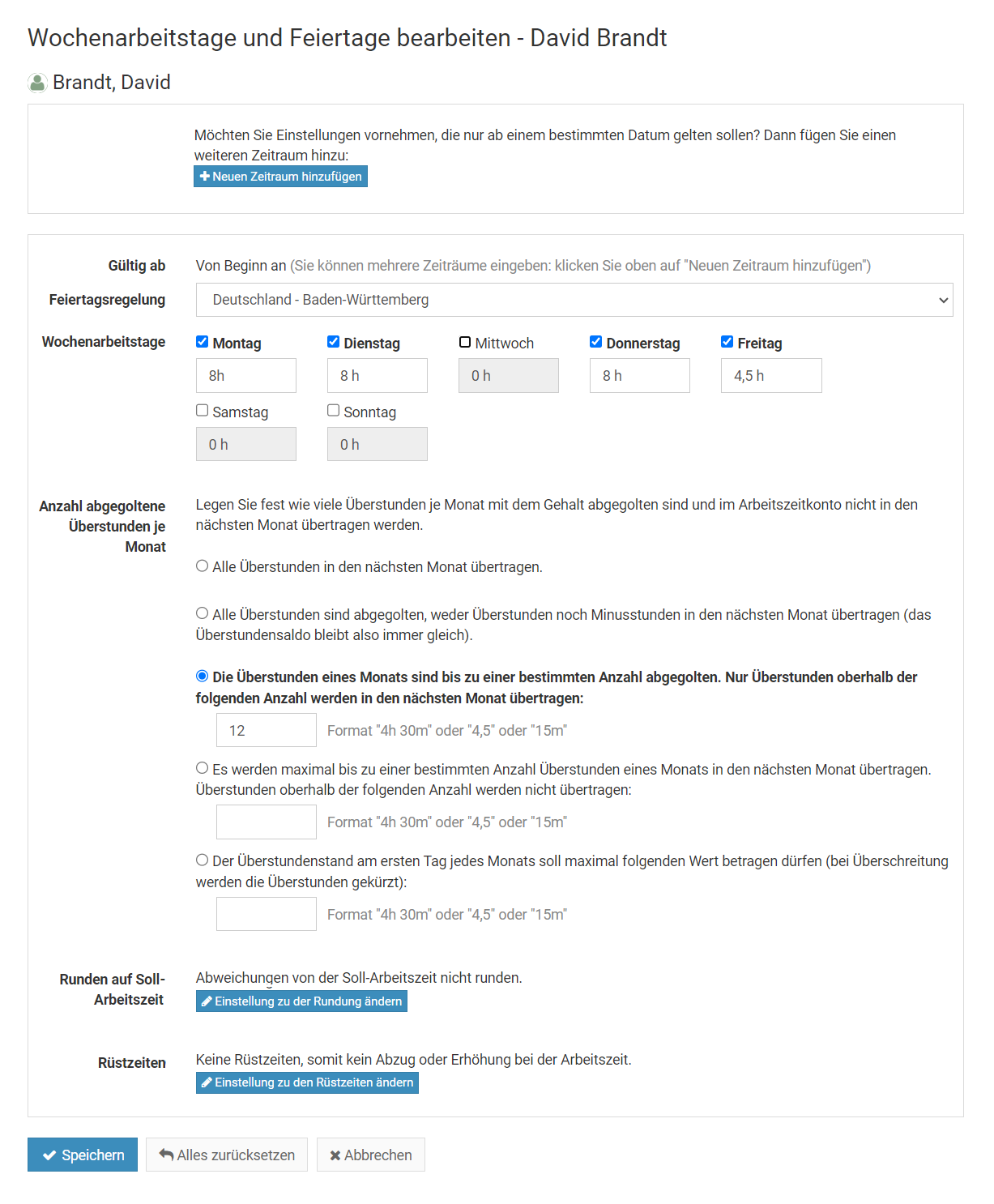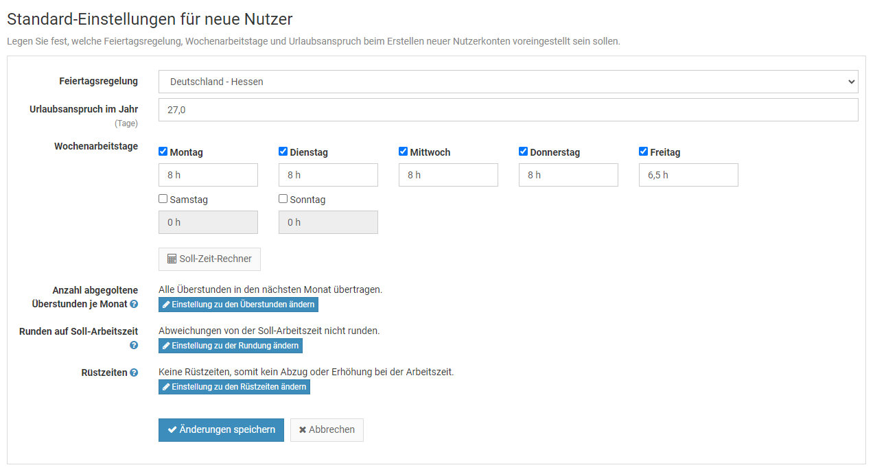 Die Begrenzungen können Sie einstellen, indem Sie sich als Admin am Timebutler anmelden und dann links unten auf "Einstellungen > Begrenzungen" klicken.