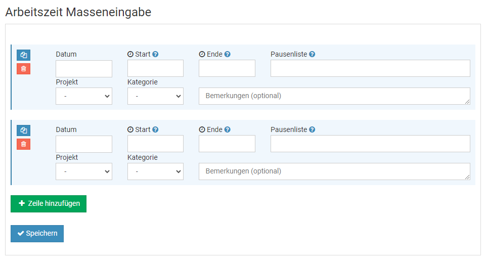 Masseneinträge eingeben.