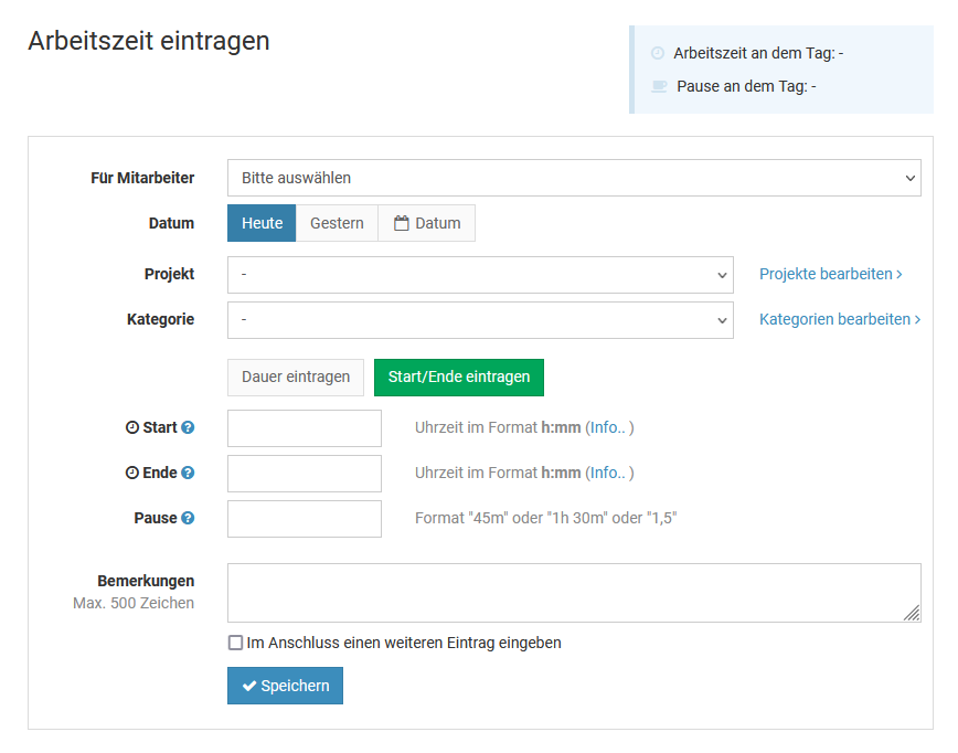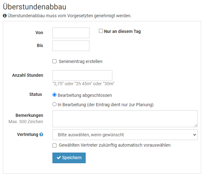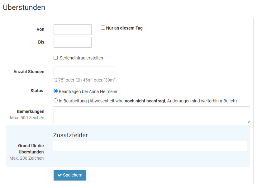 Abwesenheit über das Eingabeformular eingeben