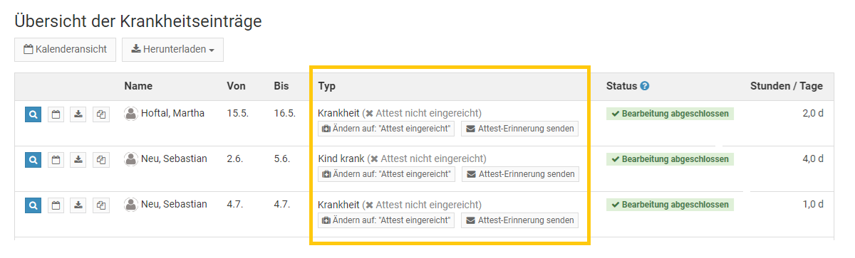 Abwesenheitseinträge können auch als