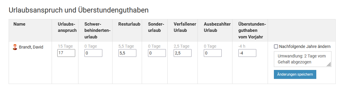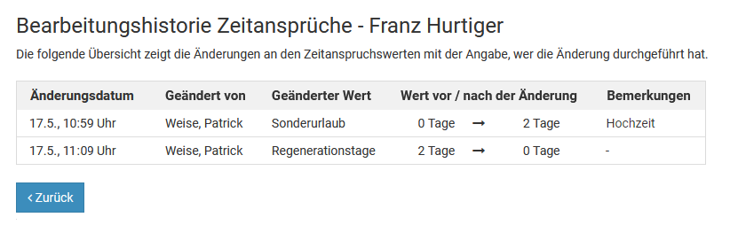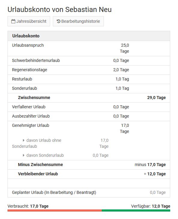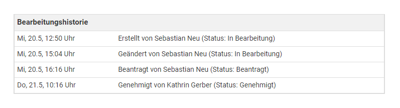 Um einen genehmigten Urlaubsantrag zu ändern, ist es also erforderlich, den Urlaubsantrag zu löschen und einen neuen Urlaubsantrag einzugeben.