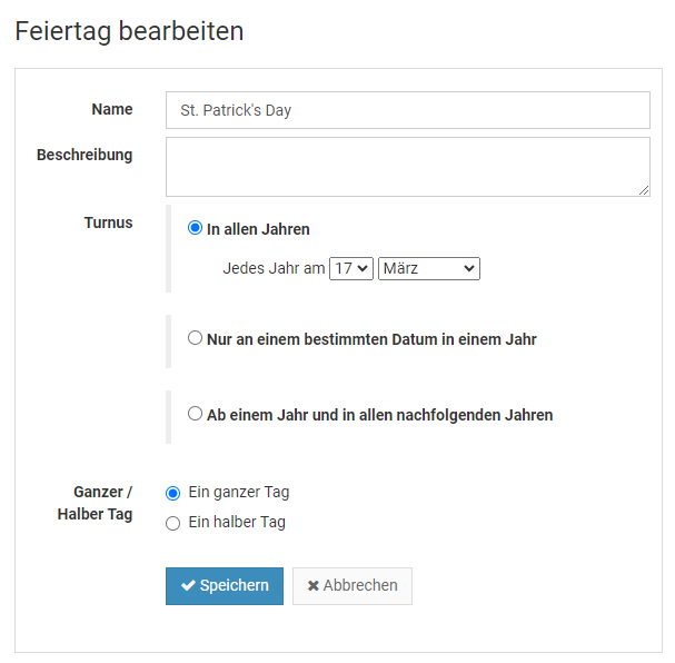 Abwesenheitseinträge Serieneinträge