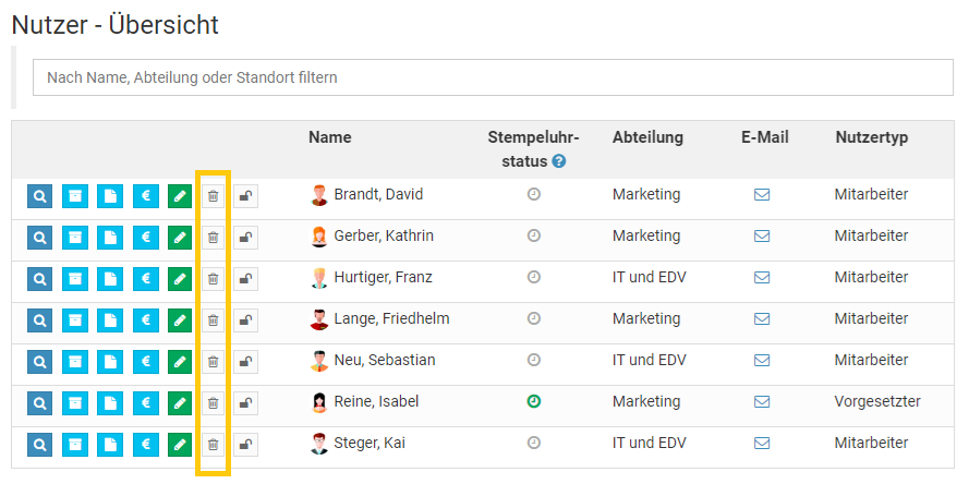 Abwesenheit löschen: Mitarbeiter-Nutzer