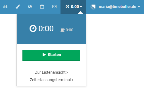 Sobald das Nutzerkonto gelöscht wurde, können Sie sich am Timebutler anmelden und ein neues Nutzerkonto mit der gewünschten Email-Adresse erstellen.