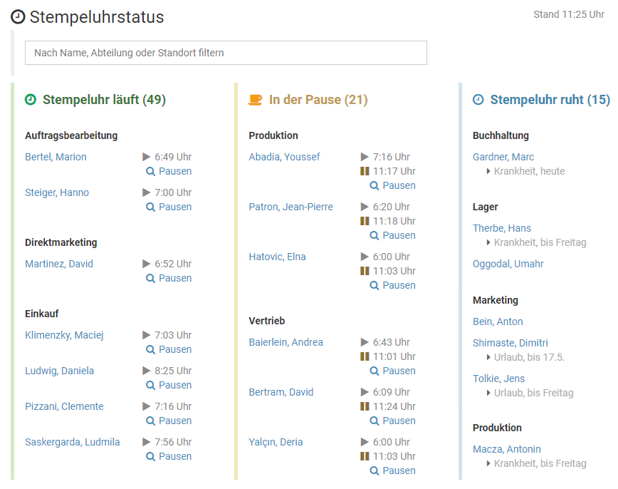 Stellen Sie im Filter die gewünschte Abteilung oder den Standort ein und klicken auf den Button "Filter anwenden".