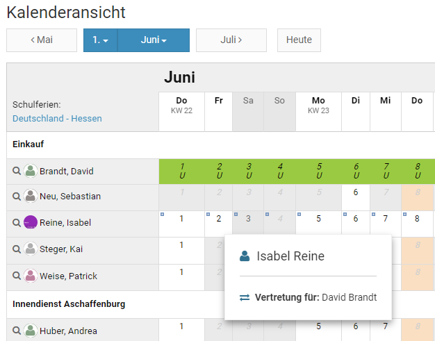Alternativ kann der Vorgesetzte oder Admin die Kalenderansicht per Klick links oben auf "